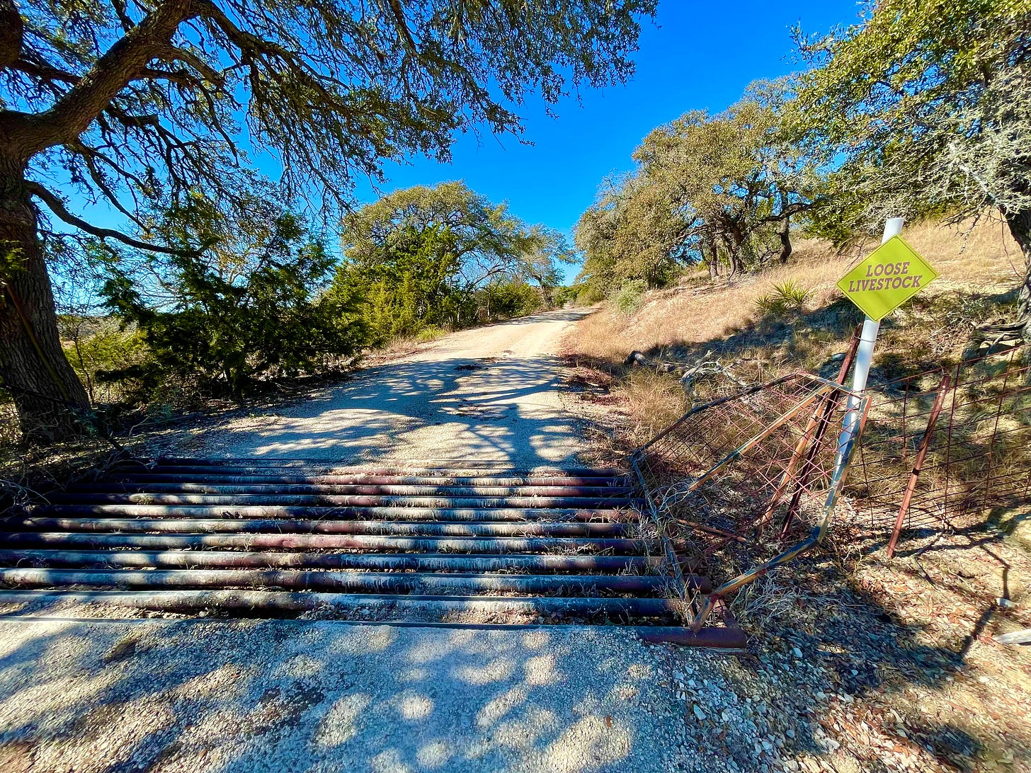In my ancient life having lived for a number of years in the western United States I have found some things for sure. 1. Cattle Guards always pop up where you least expect them. A good bump gate would have served much better. 2. Yep, some stock learns the fine art of walking across the bloody things. Other stock gets hung up with sad consequences. 3, The other thing is they make my old pickup rattle like the tin can it is. Sadly, I just set thar telling myself, "Shut up ya old fool , its paid off."